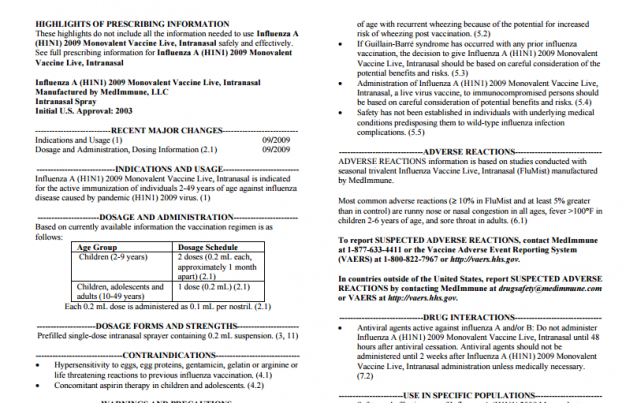 Tagged Under: Tags: dosage, H1N1, Influenza A, ingredients, insert sheet, side effects, usage, warnings